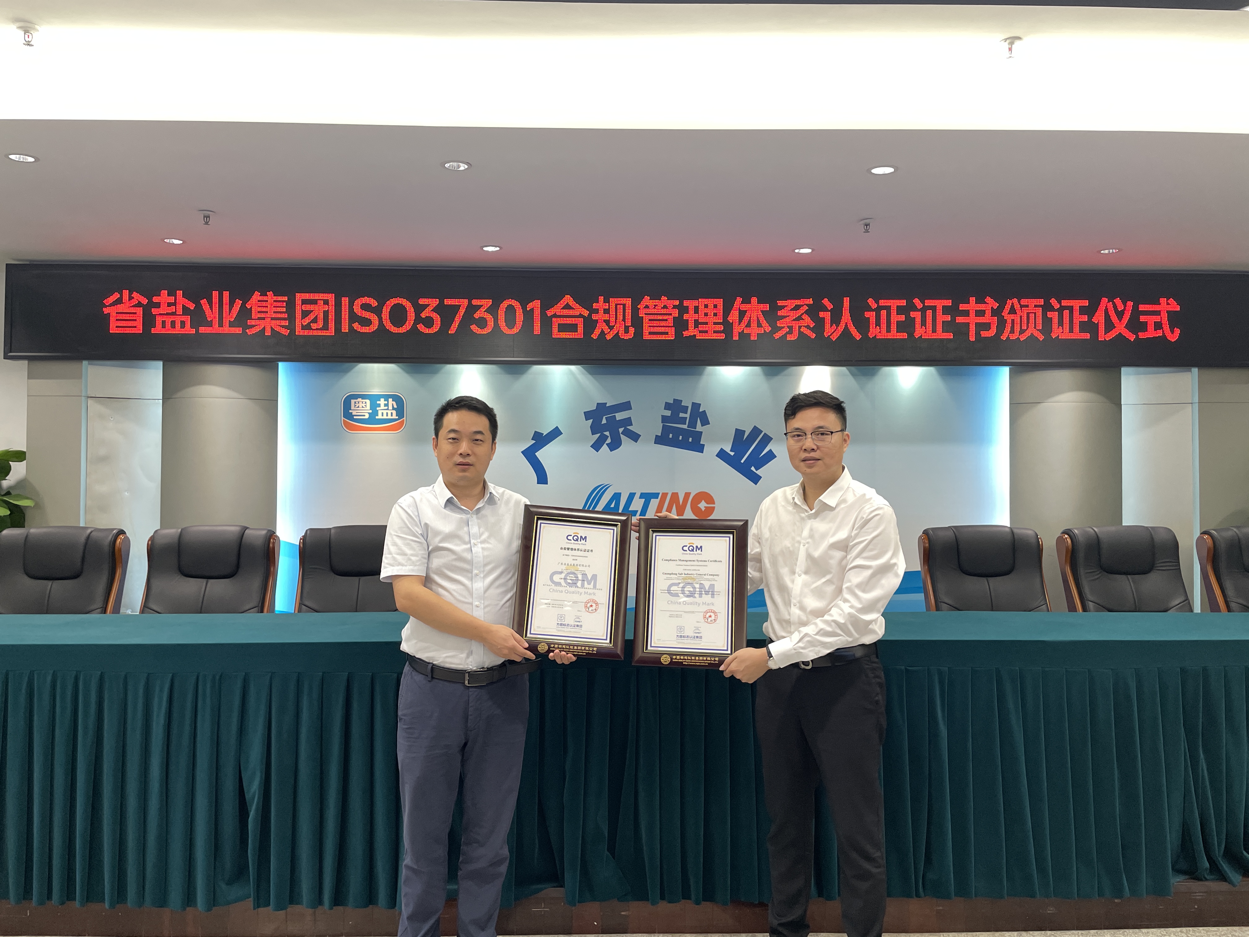 CQM方圓廣東向聯合電服頒發(fā)合規(guī)管理體系認證證書
